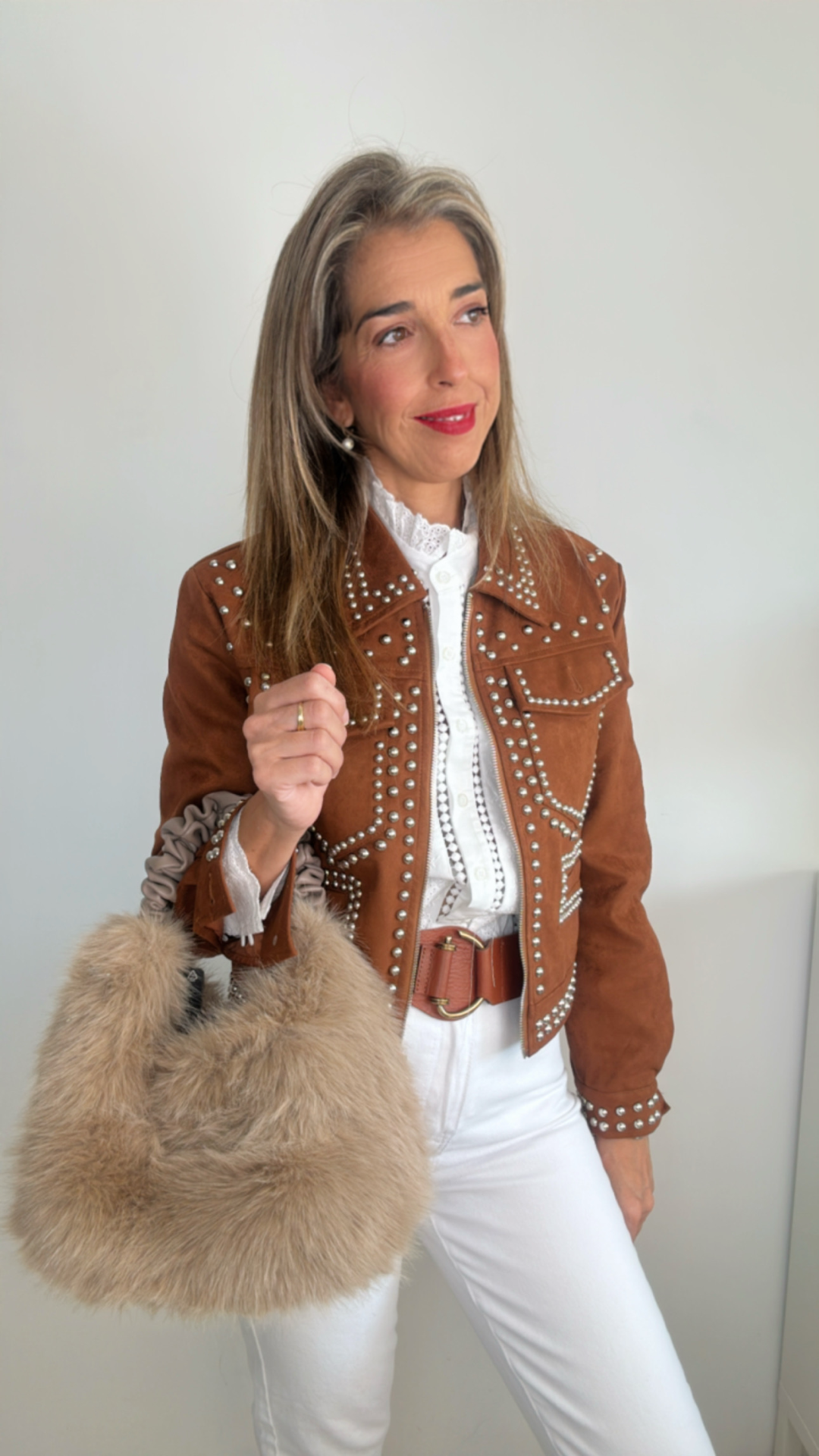 Cazadora efecto ante con tachuelas en la parte delantera.