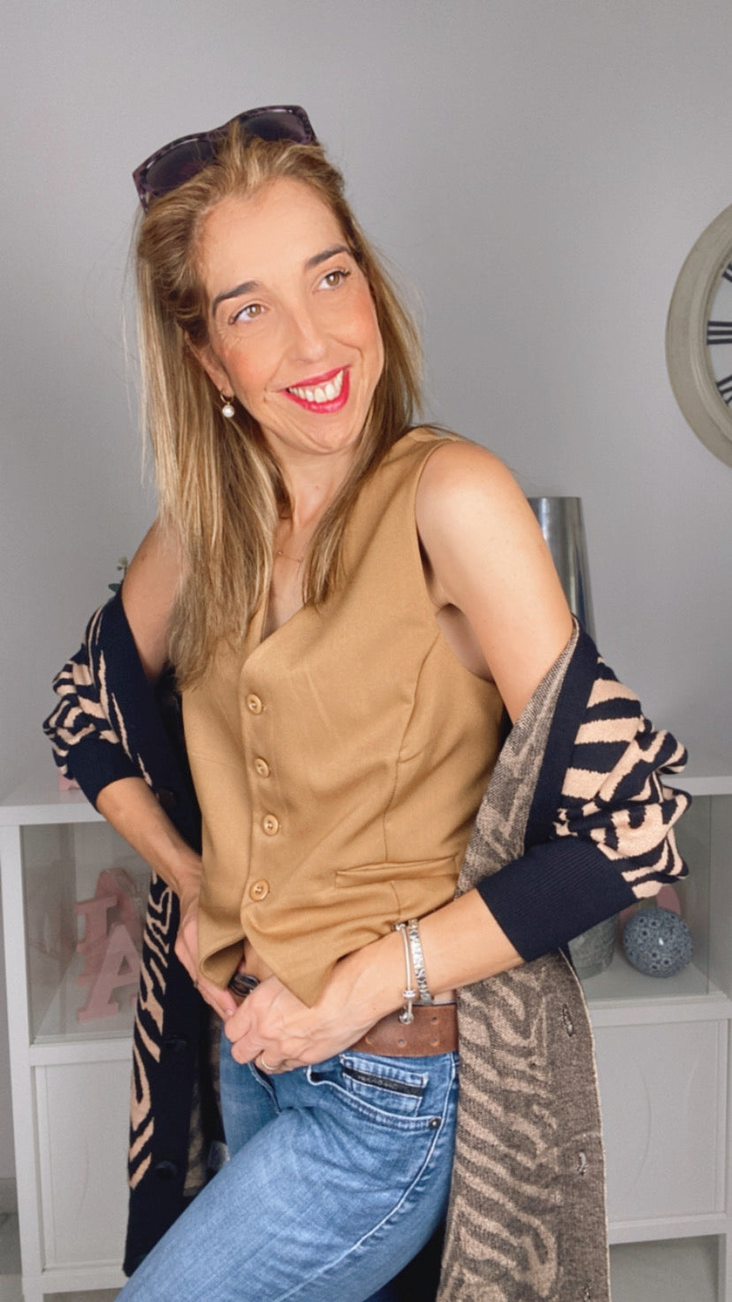 M'encanta. És justa la talla. Amb una brusa llargueta, o no, queda perfecte. El tono de color texà molt maco.