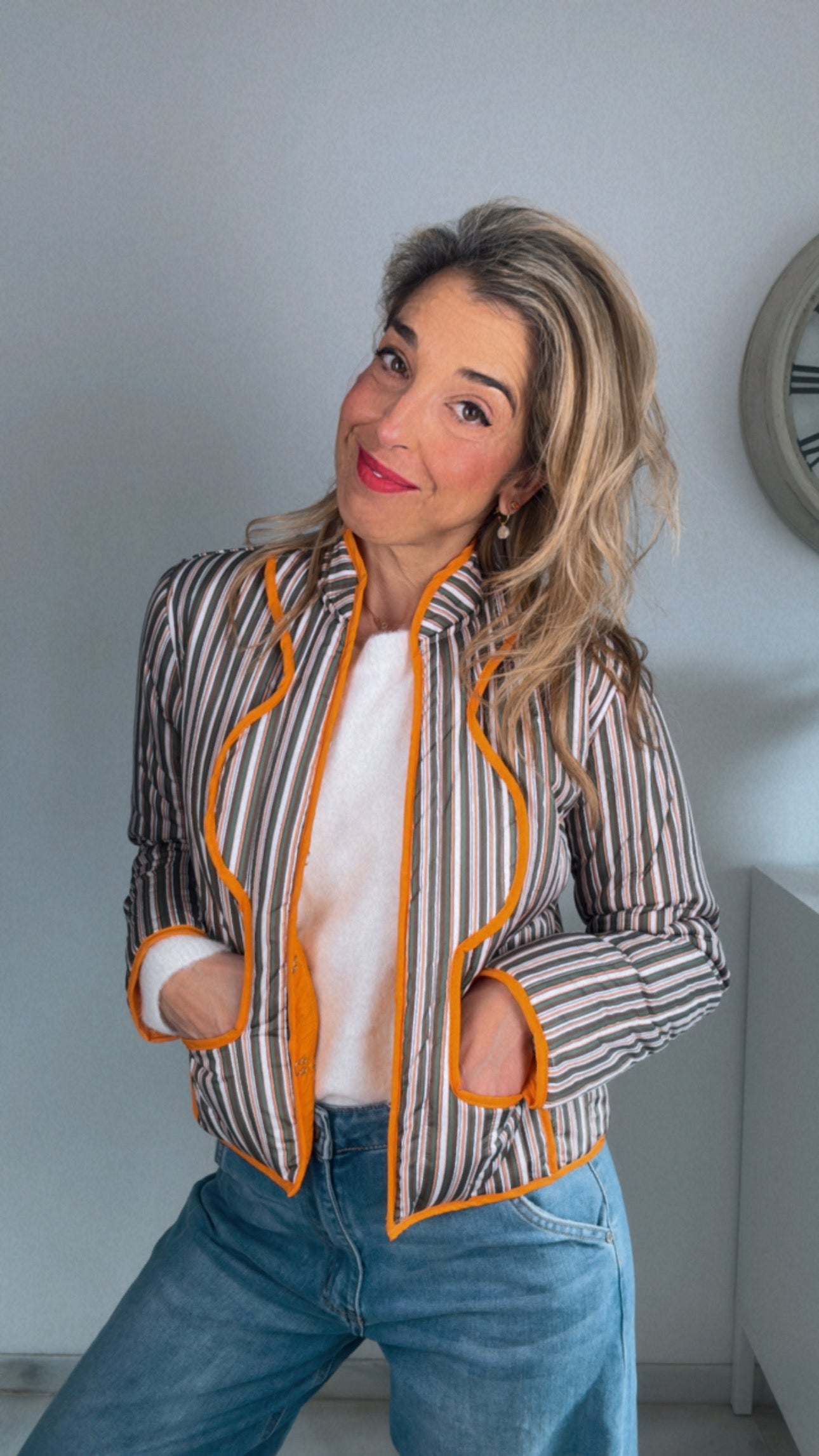 La modelo usa talla 36 y lleva talla S/M. Mide 1,69cm