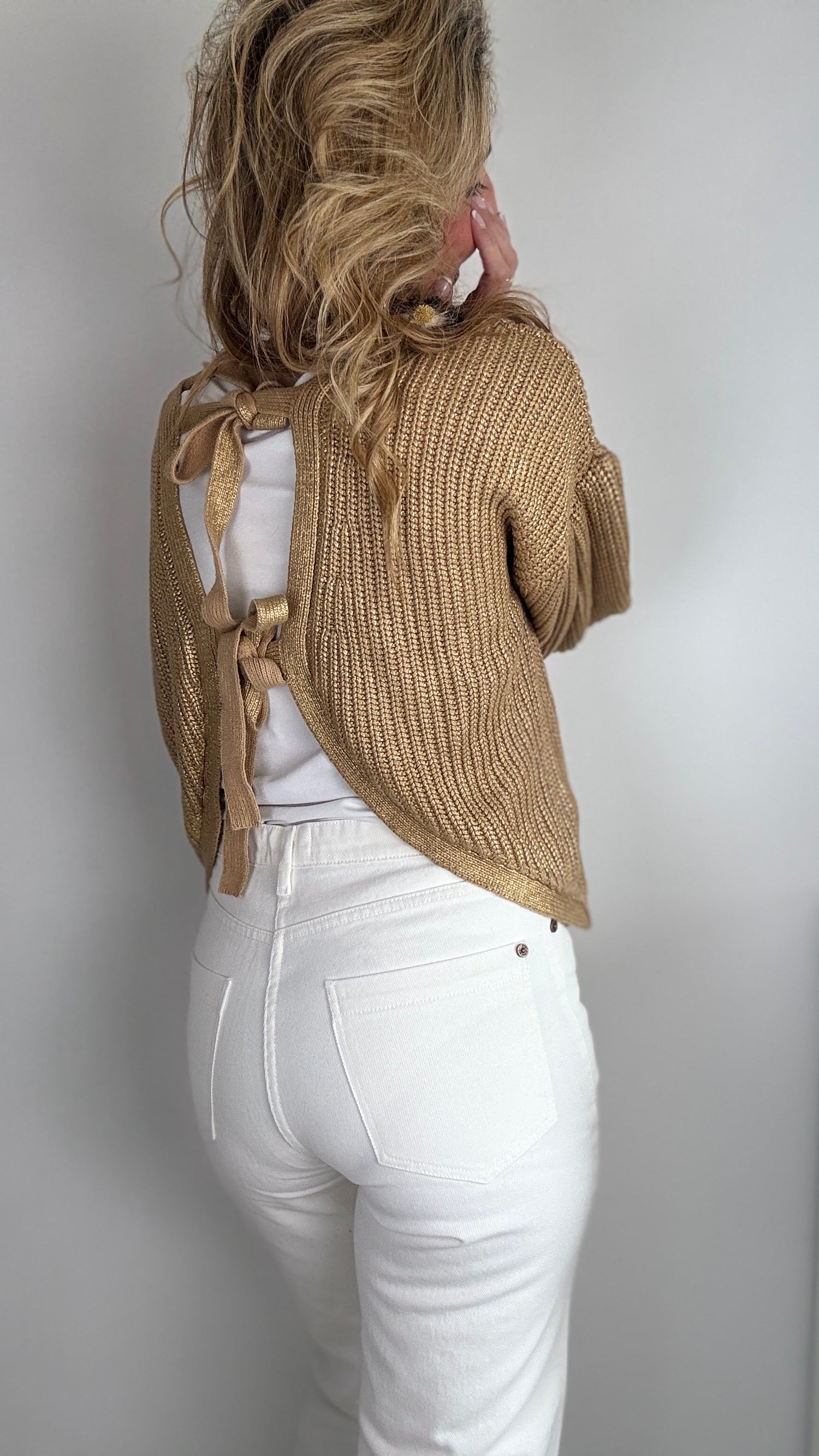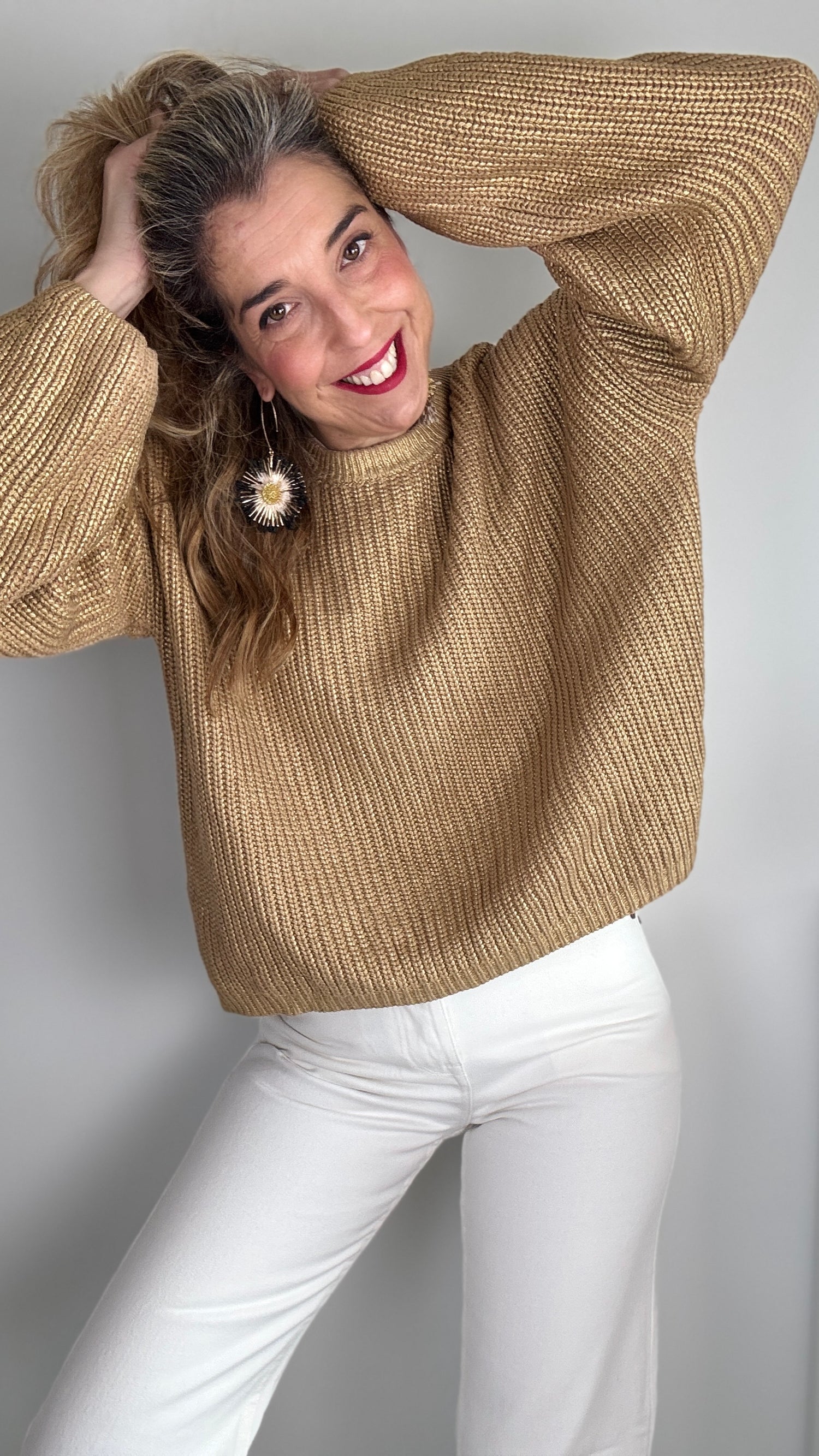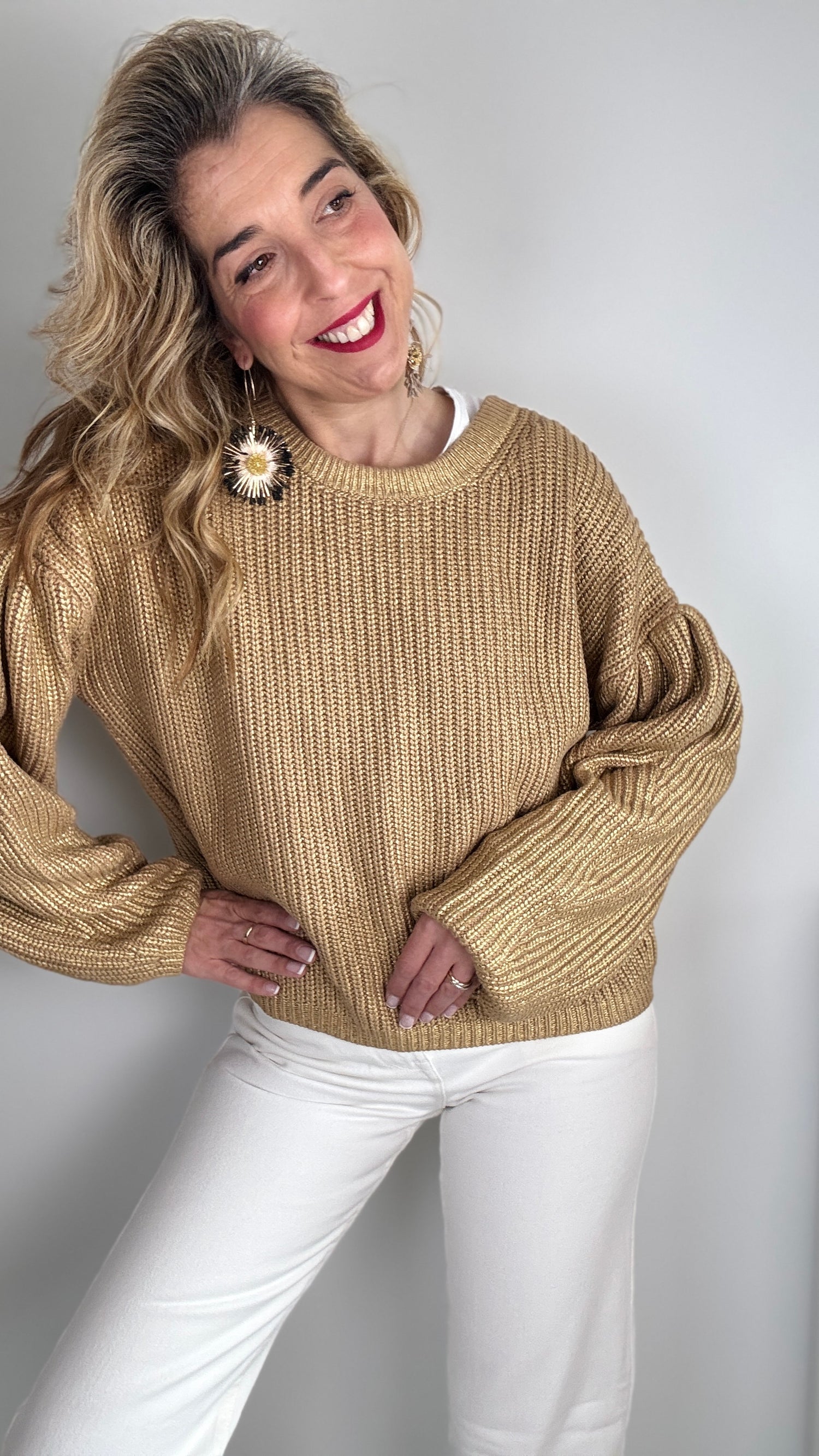 Jersey en dorado metalizado., oversize con espalda al aire.